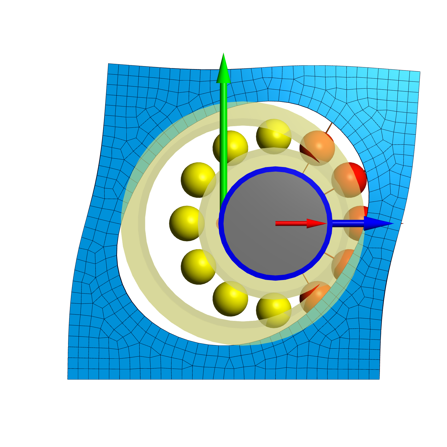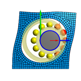 Als einfaches Beispiel zunächst ein Rillenkugellager in einem quadratischen Block, der an der Unterseite starr eingespannt ist. Das Lager wird horizontal belastet.